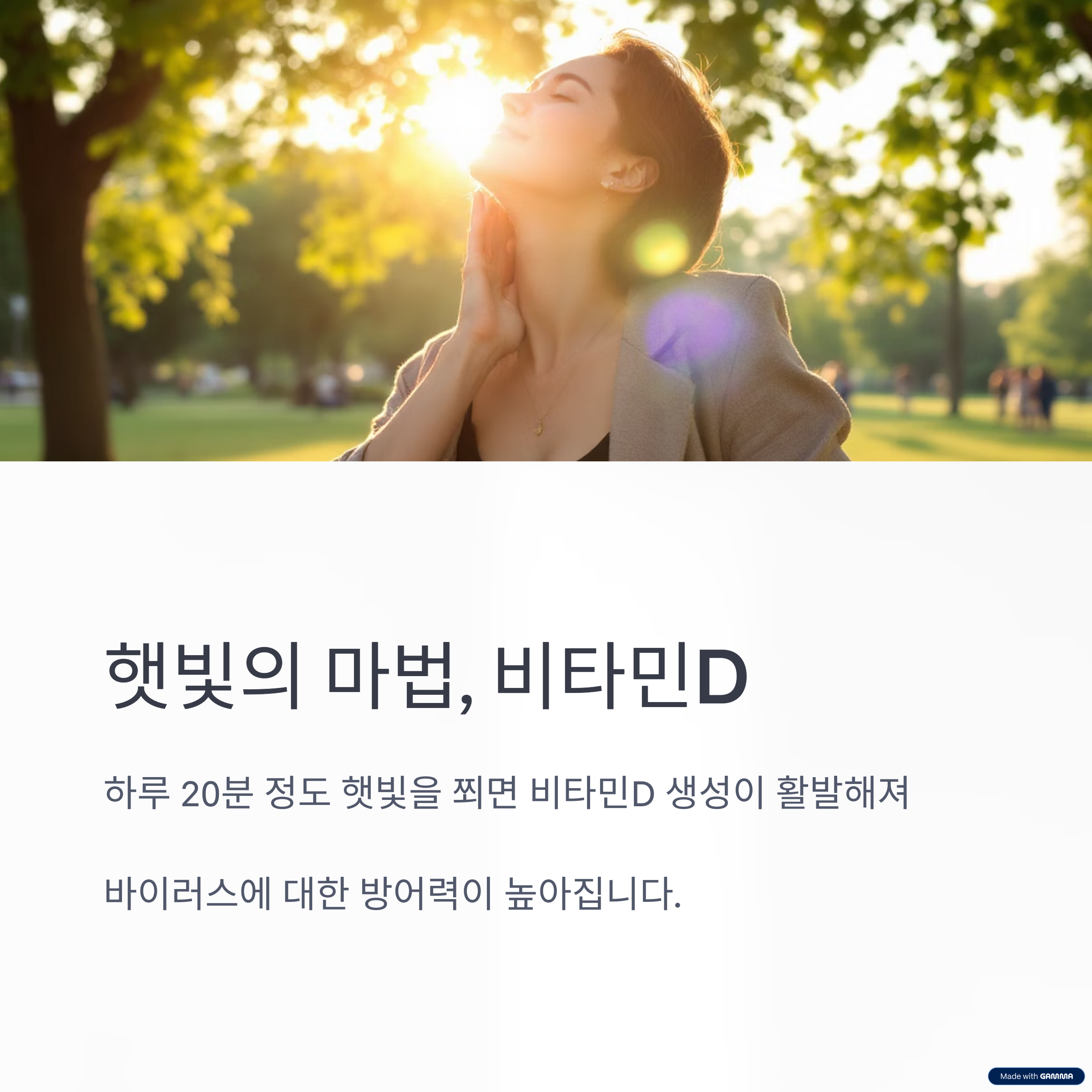 햇빛을 쬐고 스트레스를 관리하는 작은 루틴이 쌓여 면역력을 만듭니다.
