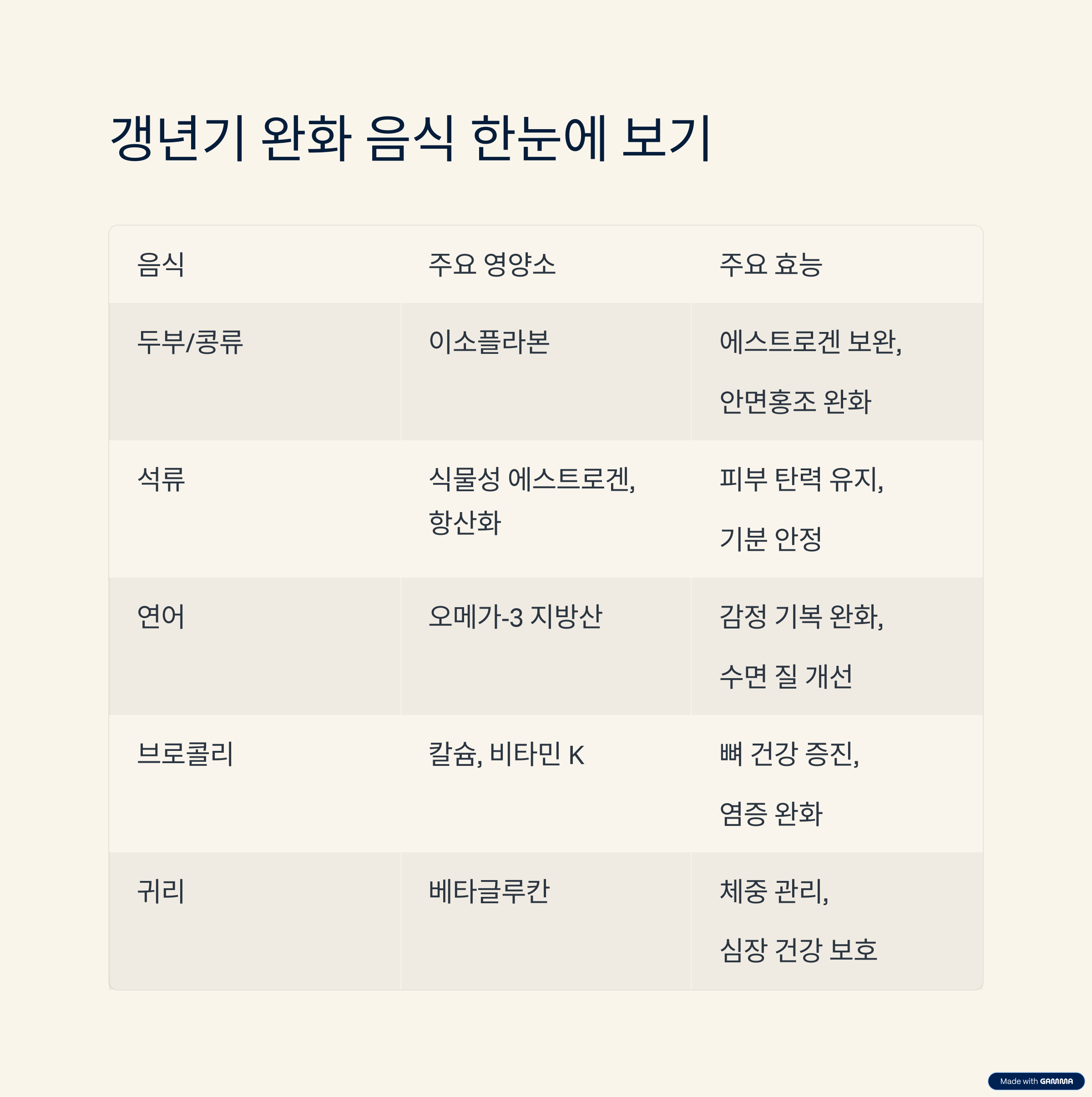 갱년기 완화 음식 요약표