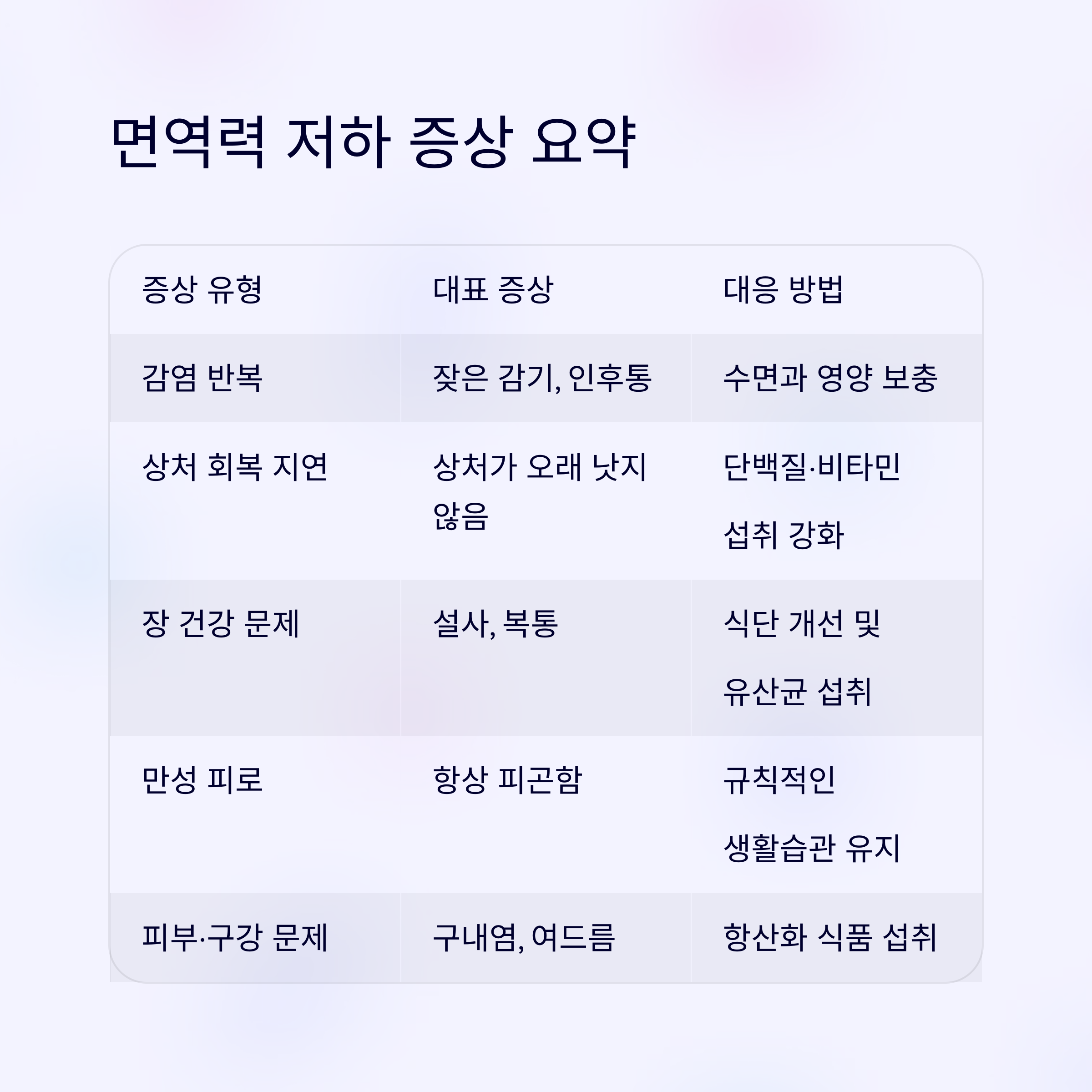 면역력 저하 증상 요약표