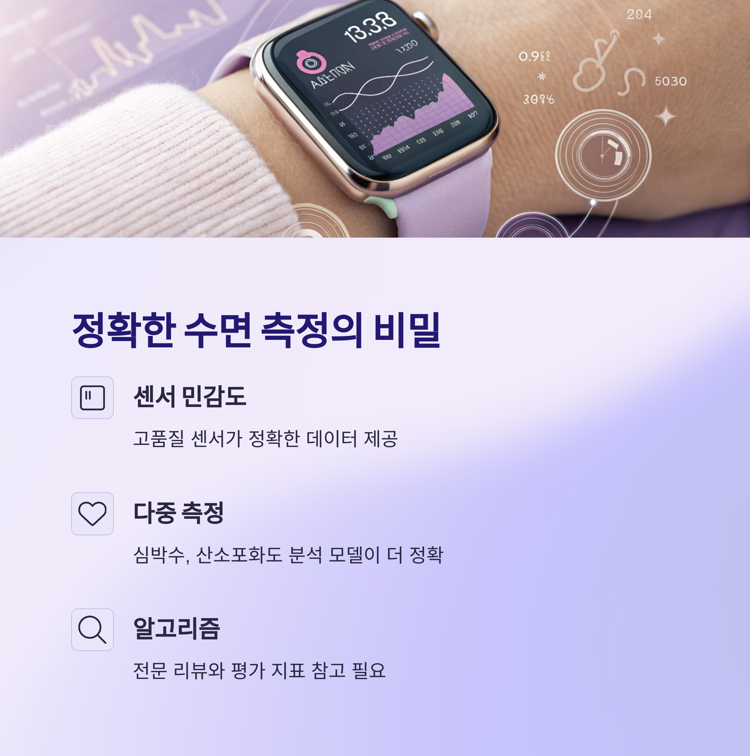 센서의 민감도, 착용 안정성, 알고리즘 정밀도가 중요합니다