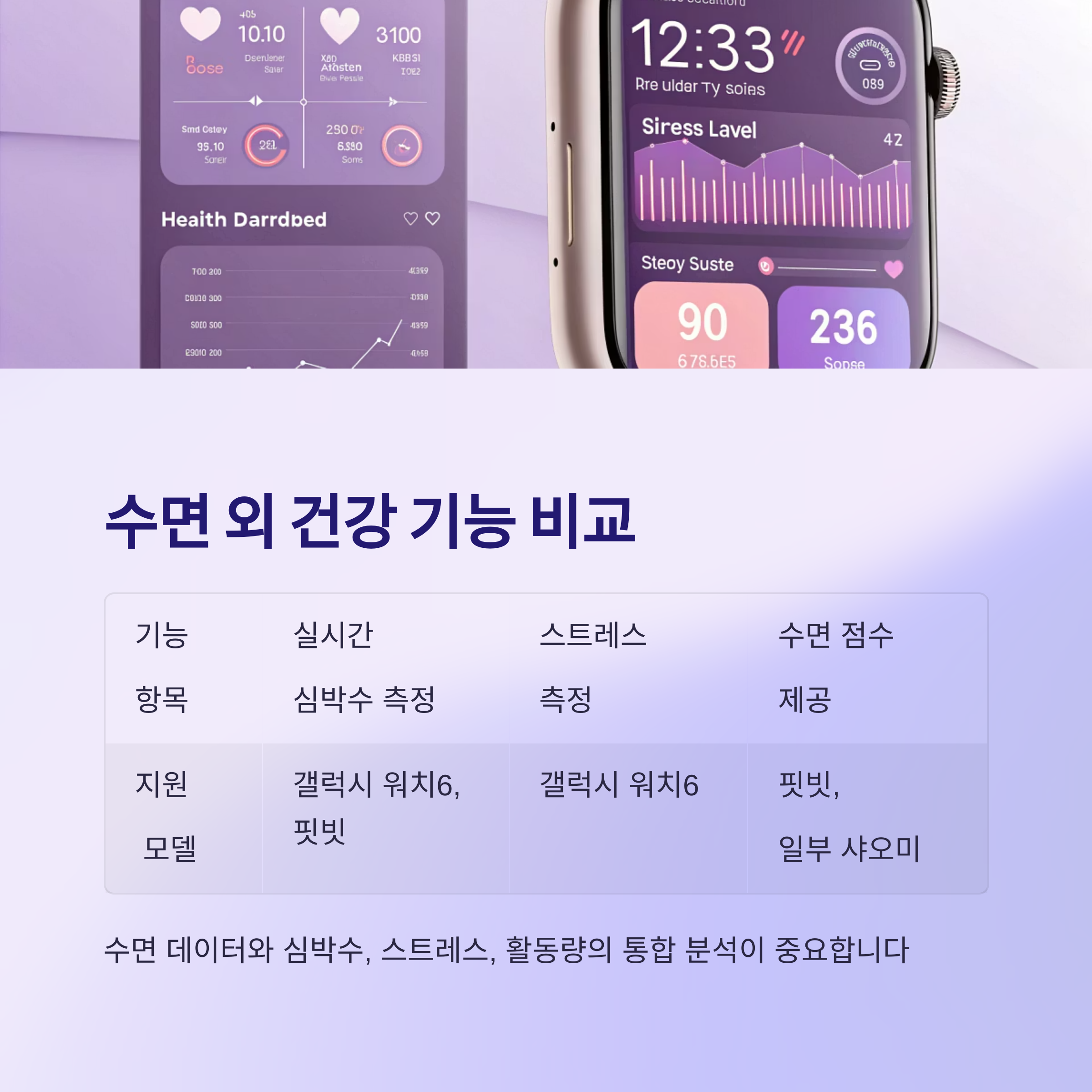 기능 항목 실시간 심박수 측정 스트레스 측정 수면 점수 제공