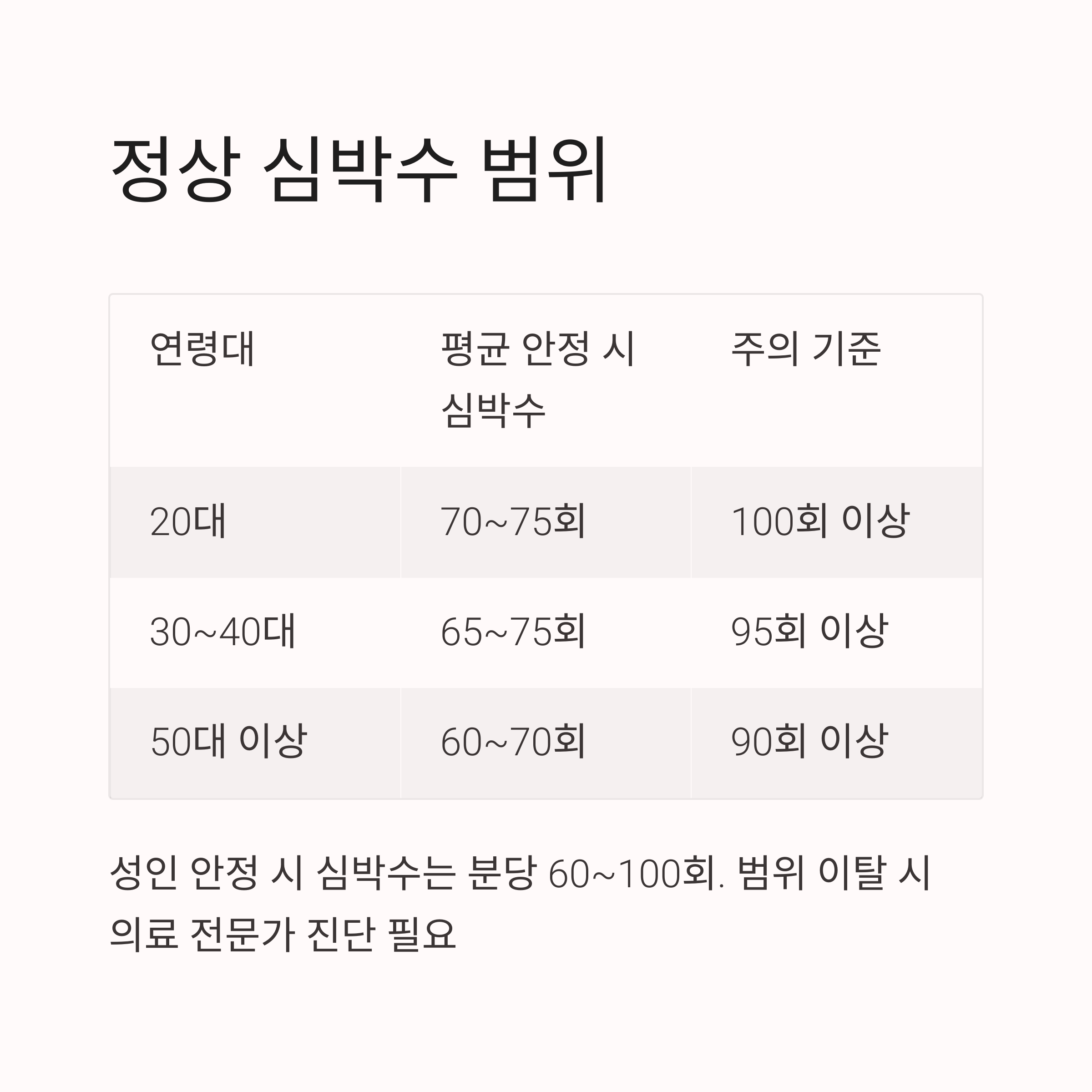성인의 안정 시 심박수는 보통 분당 60~100회입니다