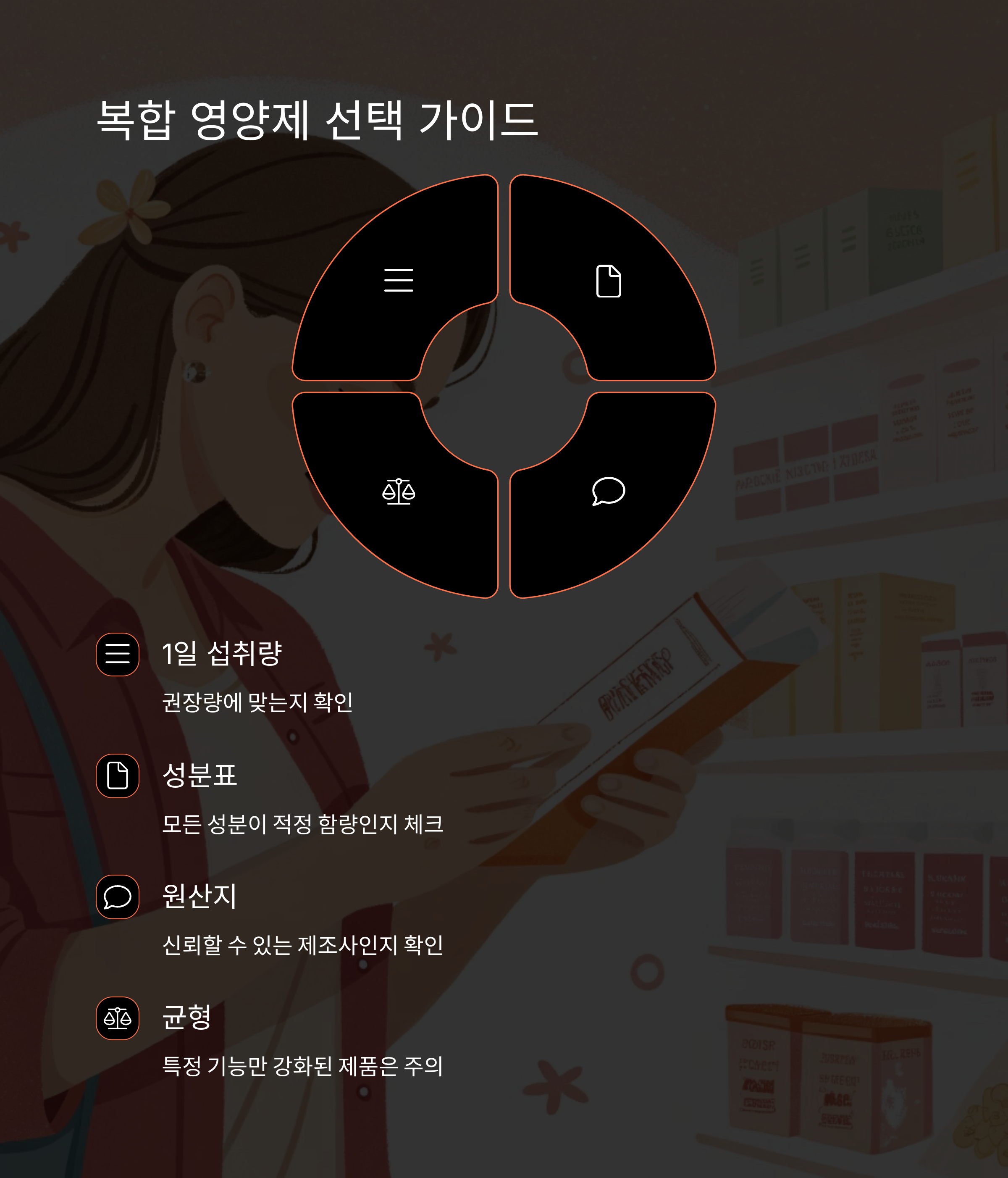 자신의 증상에 맞춘 성분을 선택해 복합적으로 접근하는 것이 중요합니다