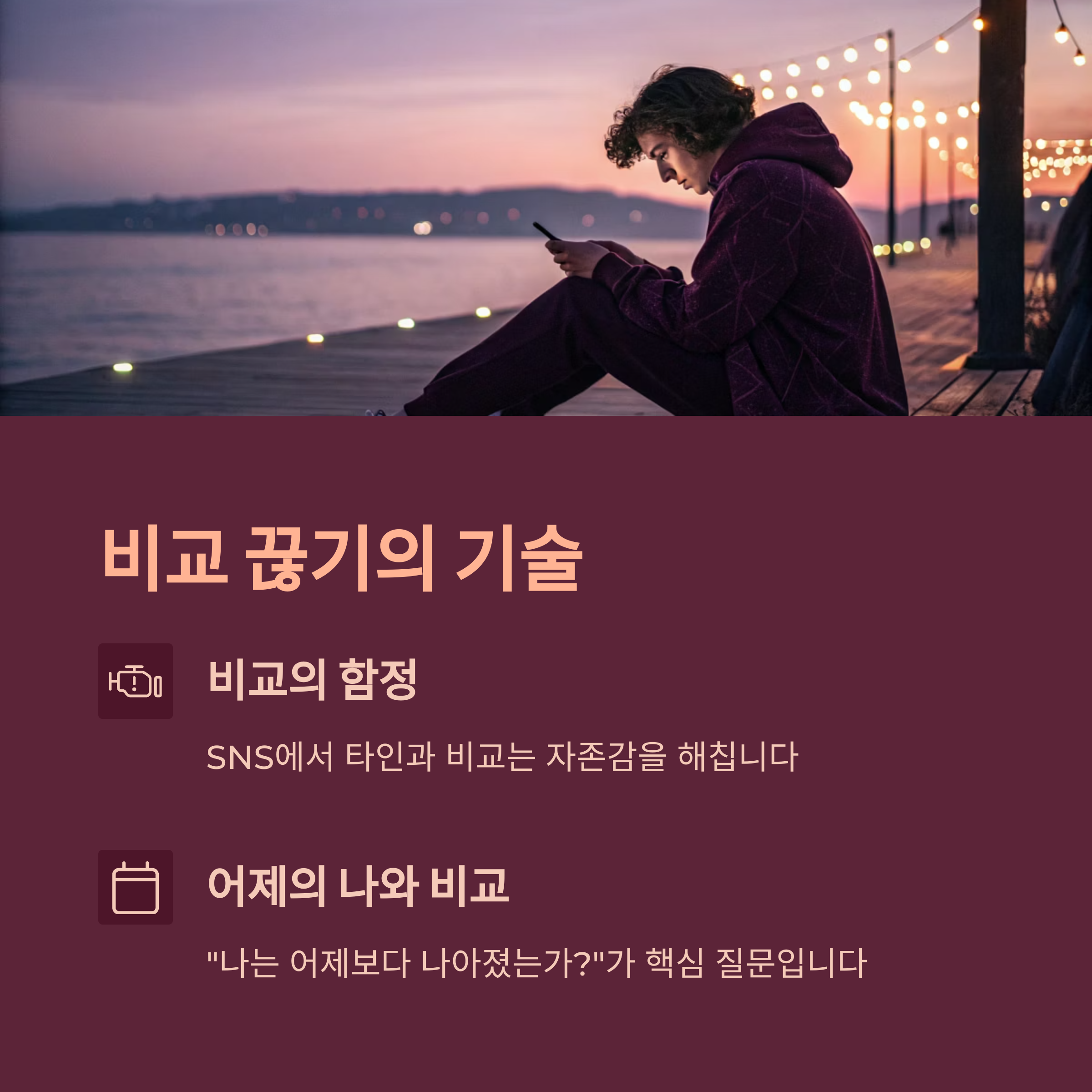 비교는 끝이 없고, 자신감은 서서히 무너집니다.