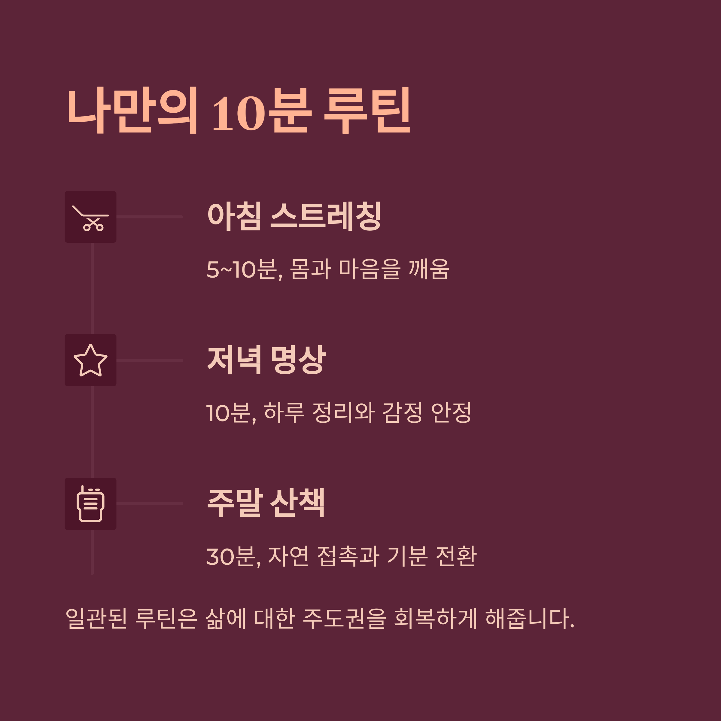 일관된 루틴은 삶에 대한 주도권을 회복하게 해줍니다.