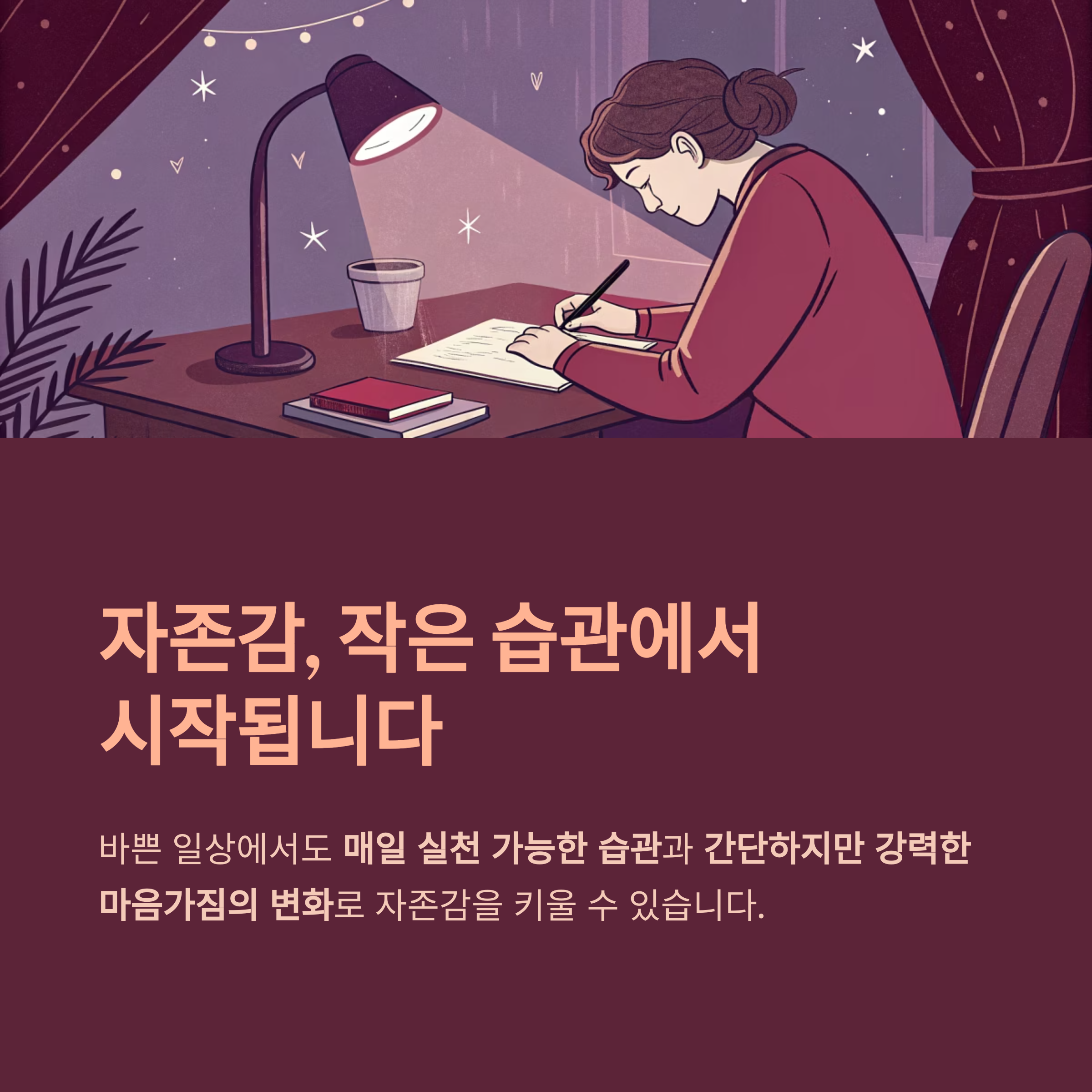 자존감은 스스로에 대한 긍정적인 믿음에서 시작됩니다.