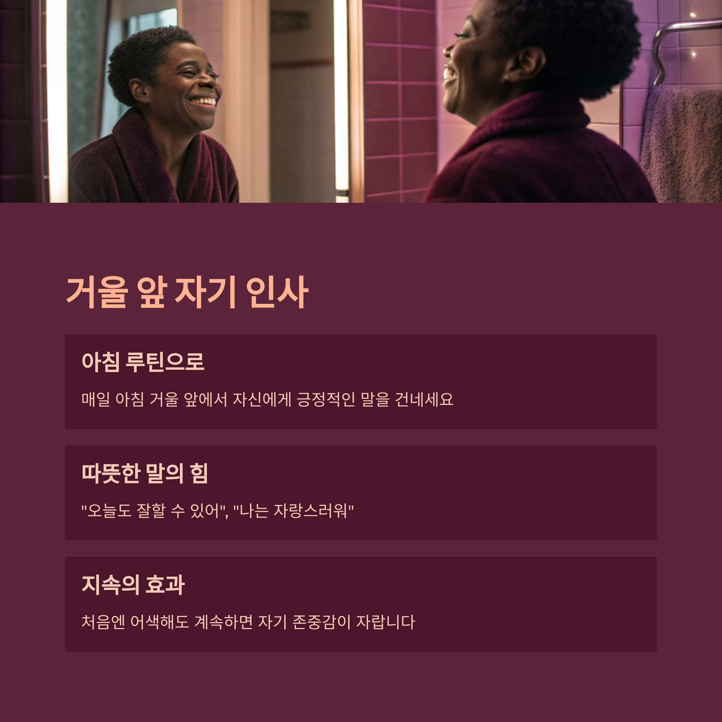 아침마다 거울 앞에서 자신에게 말을 걸어보세요.